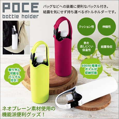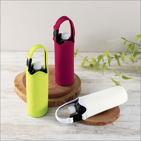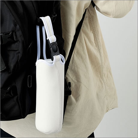 バッグなどの装着に便利なバックル付き。結露を気にせず持ち運べるボトルホルダーです。