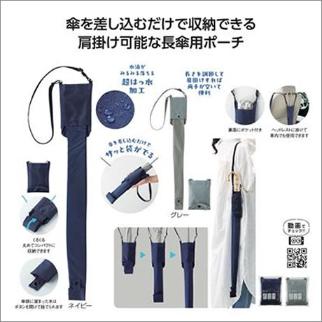 コンパクトサイズで持ち運びができる長傘ポーチ。