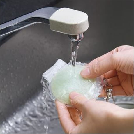 約28℃以下で自然凍結するPCM素材を使用しており、冷凍庫はもちろん、水道の流水でも凍結します。