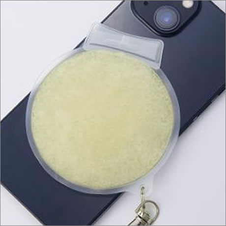 頬やおでこにも当てやすく、名入れも目立つサークル型。炎天下で熱くなってしまったスマートフォンなどの冷却にも使えます。