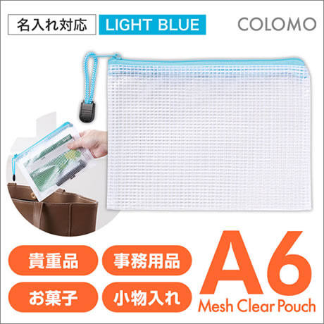 カラモ 両面メッシュクリアポーチ A6 ライトブルー