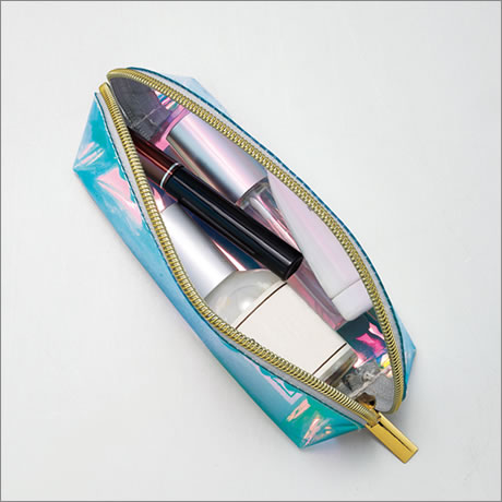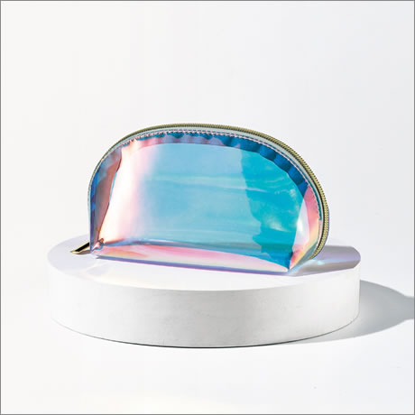 オーロラに輝くカラーにビニール生地ならではの透明感とツヤをプラスしたポーチ。
