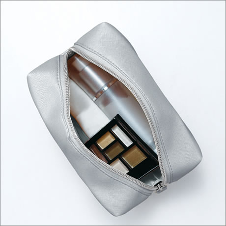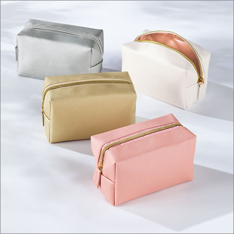 きらめくサフィアーノ生地と内生地のサテンが華やかなポーチ。