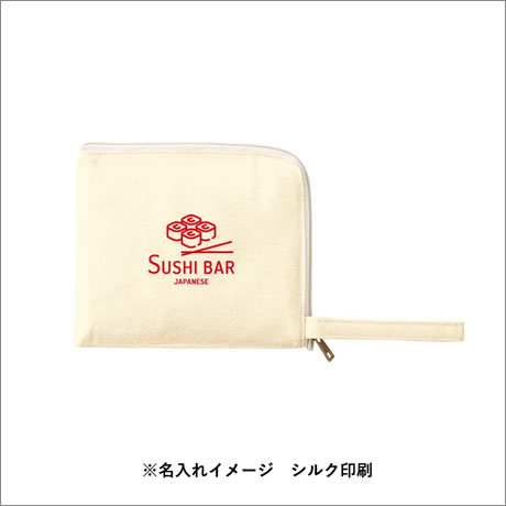 - キャンバスL字ファスナーフラットポーチ(S) ナチュラル