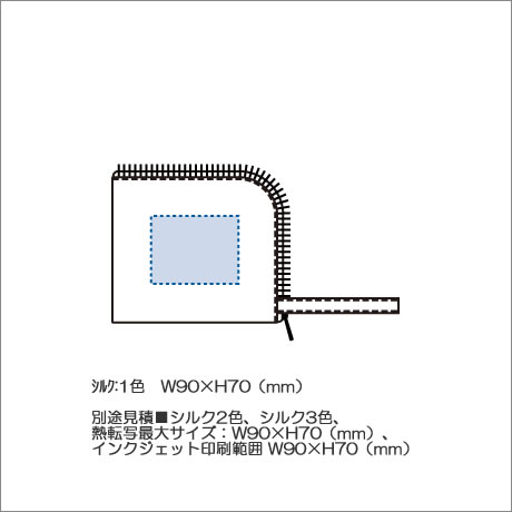 別途見積■シルク2色、シルク3色、熱転写最大サイズ:W90×H70(mm)、インクジェット印刷範囲 W90×H70(mm) |