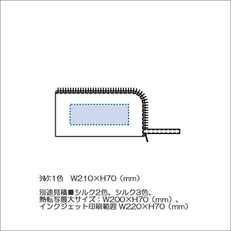 別途見積■シルク2色、シルク3色、熱転写最大サイズ:W200×H70(mm)、インクジェット印刷範囲 W220×H70(mm) |