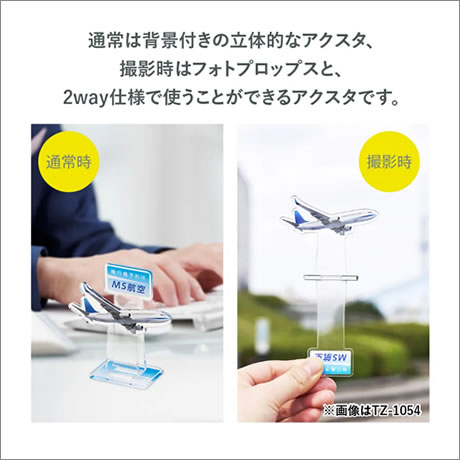 通常は背景付きの立体的なアクスタ、撮影時はフォトプロップスと、2way仕様でつかうことができるアクスタです。