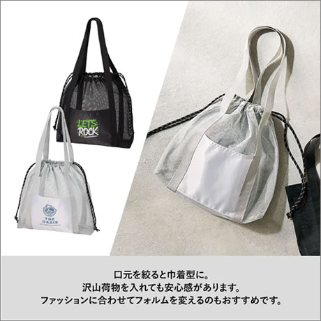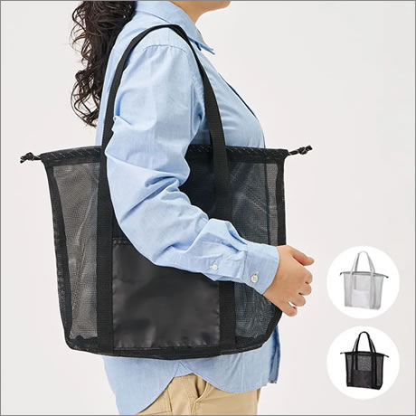 M・Lの2サイズ展開で、Lサイズはフェイスタオルやビーチサンダルなど水場のレジャーシーン、