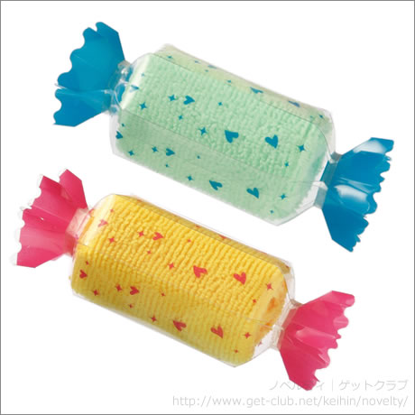 キャンディ包装が楽しいユニークなハンドタオルのプレミアムです。