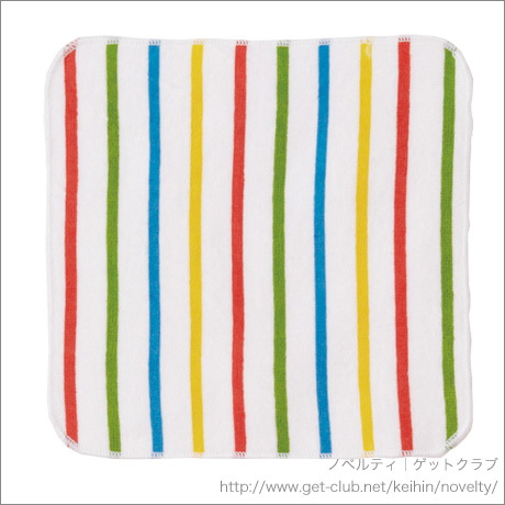 カラフルなストライプカラーのハンドタオルが、ポップでおいしそうなペロペロキャンディになりました。