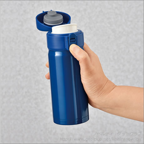 片手でらくらくワンプッシュオープンのステンレスマグ。バッグに入れても重くない丁度いい容量の350ml。