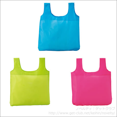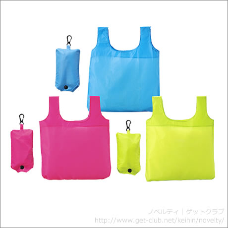 ポップなカラーがポイントの折りたたみ式エコバッグ。コンパクトに携帯でき、荷物が多くなる時にも便利です。