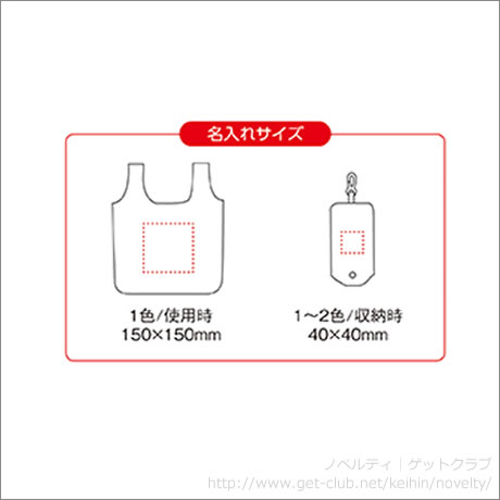 名入れサイズ:1色/バッグ使用時:150×150mm、1色/収納時:40×40mm