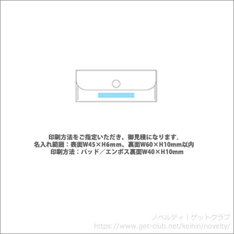 備考 印刷方法をご指定いただき、御見積になります。 名入れ範囲:表面W45×H6mm、裏面W60×H10mm以内 印刷方法:パッド/エンボス裏面W40×H10mm