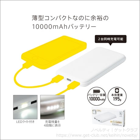 薄型ライト付モバイルバッテリー10000mAh ※完売