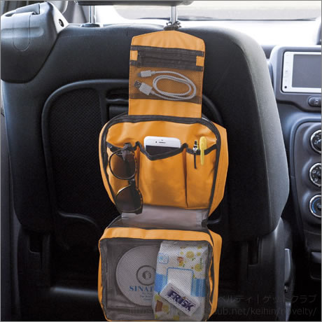 バッグインバッグとしても使い勝手のよい壁掛けポーチは、使う時に開いてフックを掛けるだ。トラベルなら洗面用品を6つのポケットにいれてシャワールームに。仕事や勉強用としてなら、小物をいれるメッシュバッグ、タテ型のポケット、いろいろ入る大型のメッシュポケットが役立ちます。