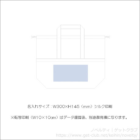 名入れサイズ:W300×H145(mm)シルク印刷 ※転写印刷(W10×10cm)はデータ確認後、別途御見積になります。
