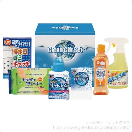 ライオントップナノックス(400g)×1・ライオントップナノックス(16g×2包)×1・ホイップマイルド(台所洗剤・250ml)×1・お風呂の洗剤スプレー(300ml)×1・キッチンクリーナー(20P)×1・排水口ゴミキャッチ(8P)×1