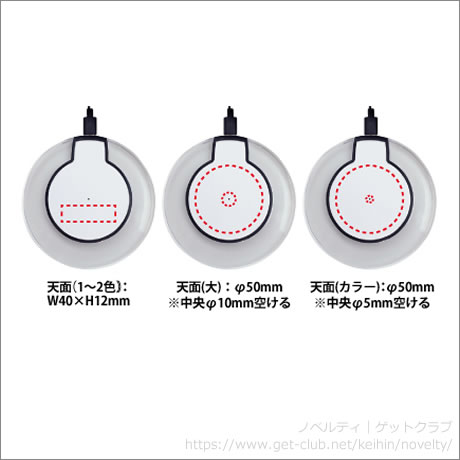 名入れサイズ:天面:W40×H12mm(中央避ける) (パッド印刷)・φ50mm(中央φ10mm空ける)
