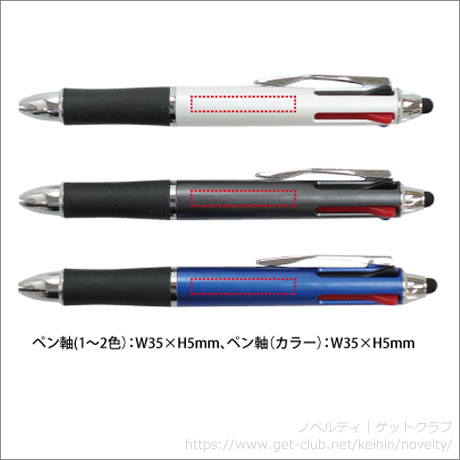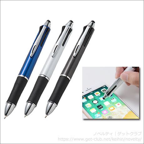 3色ボールペンとスマートフォンの画面操作ができるタッチペンが合体した多機能筆記具。