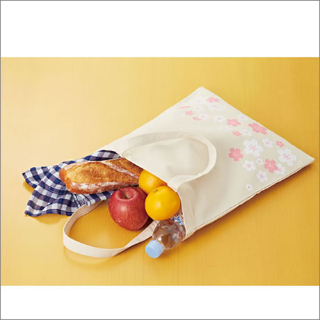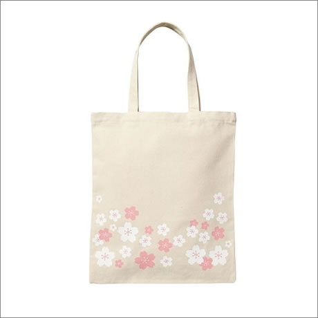 桜の花びらをちりばめた、記念品を一緒に贈るのにお勧めのバッグ。普段使いのしやすいナチュラルなトートバッグです