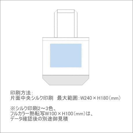 印刷方法:片面中央シルク印刷 最大範囲:W240×H180(mm)