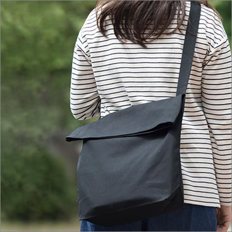 バッグ口を折ってかぶせに カジュアルスタイルのショルダー