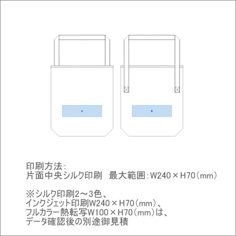 ※シルク印刷2~3色、インクジェット印刷W240×H70(mm)、フルカラー熱転写W100×H70(mm)は、データ確認後の別途御見積 |