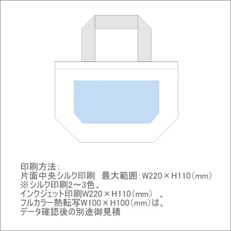 印刷方法:片面中央シルク印刷 最大範囲:W220×H110(mm)