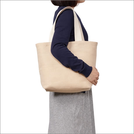 素朴なジュートとしなやかなコットンを織り混ぜた、品の良いナチュラルトート。 ジュートコットン:ジュート(黄麻)と綿で織り上げたもの