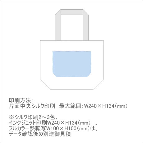 印刷方法:片面中央シルク印刷 最大範囲:W240×H134(mm)