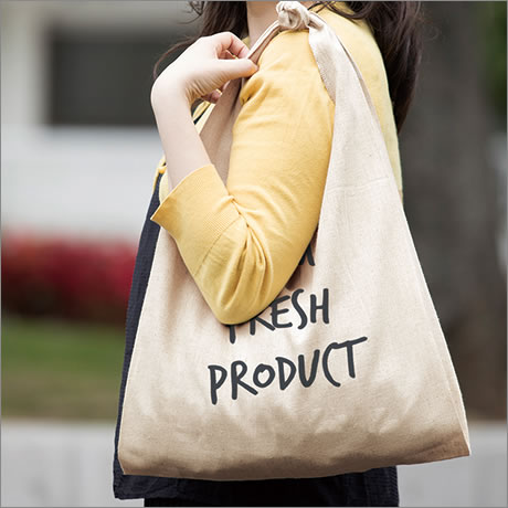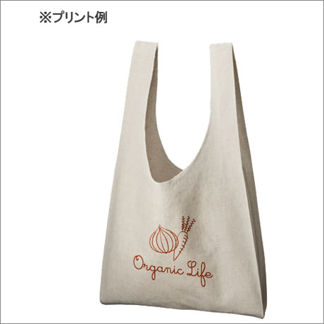 コットンとリネンを織りあわせることで、麻の素材感を残しながらしなやかな風合いに仕上げました。素朴な天然素材の風合いは、オーガニックコスメや食料品店のパッケージとしてもおすすめ。カサ高いものもすっぽり収まるマルシェバッグは、気取りすぎないリラックスデザインが爽やかな素材感にマッチします。サラッと持つとオシャレに決まるトートバッグです。1色プリントでロゴを入れるだけでも、素材に遊び心がある為インパクトのあるアイテムです。