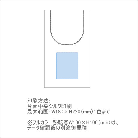 印刷方法:片面中央シルク印刷 最大範囲:W180×H220(mm)1色まで