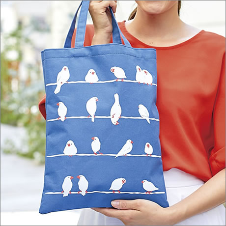 仲良し文鳥たちのトートバッグ。キュートな表情にも注目です。