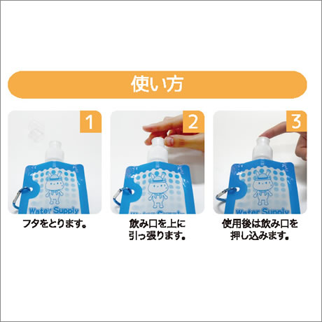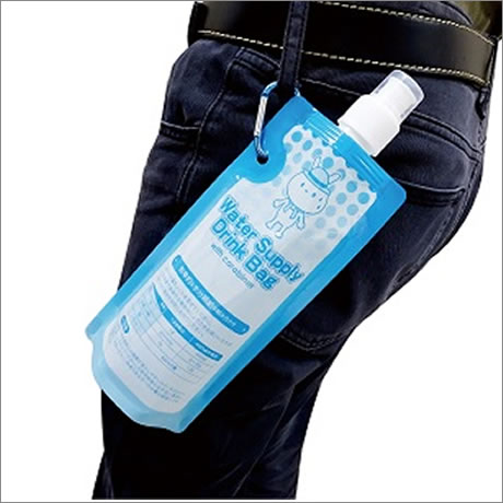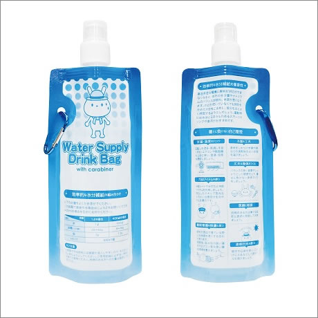 効率的な水分補給についてのアドバイスがプリントされた給水ドリンクバッグ