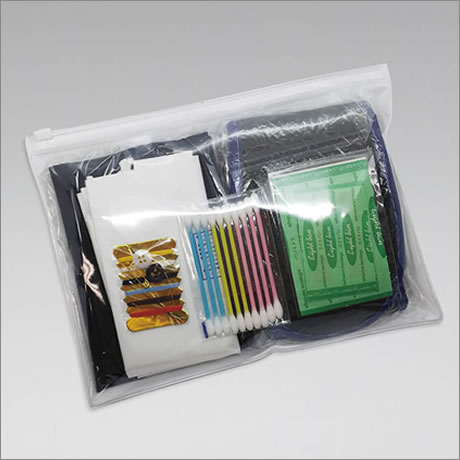 スライダー付き収納ポーチ、首枕、アイマスク、耳栓、スリッパ、綿棒10P、衣類収納巾着袋、ソーイングセット、キズバン(大小×各2)