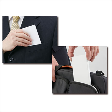 携帯しやすいフラットタイプのモバイルバッテリー。携帯しておけば、スマートフォンの充電切れの心配から解放されます。