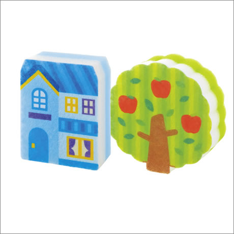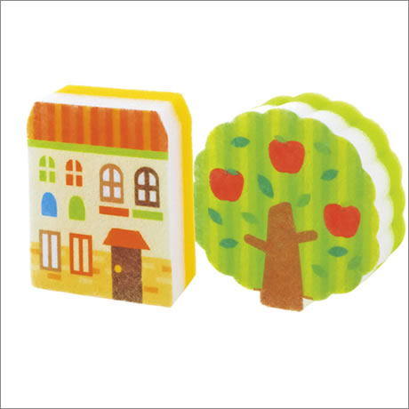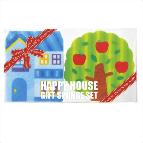 家と木の絵柄が可愛いスポンジの2個セットです。カラフルな絵柄でキッチンを彩りましょう♪