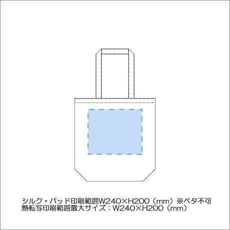 デザインスペース:W24×22cm ■シルク印刷1色印刷 W24×22cm 3色まで対応 別途御見積■熱転写印刷 W10×10cm |