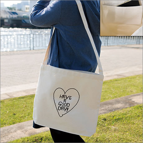 ゆったりと長い持ち手なので、たすきがけも出来ます。ファッション性も高く、印刷映えするデザインです。