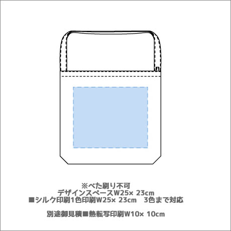 デザインスペースW25×23cm ■シルク印刷1色印刷W25×23cm 3色まで対応 別途御見積■熱転写印刷W10×10cm OPP袋入れは別途@25円 |