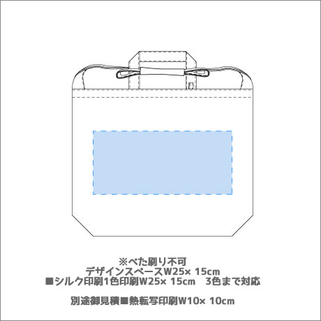 デザインスペースW25×15cm ■シルク印刷1色印刷W25×15cm 3色まで対応 別途御見積■熱転写印刷W10×10cm OPP袋入れは別途@25円 |