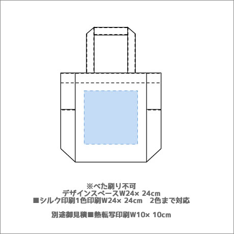 デザインスペースW24×24cm ■シルク印刷1色印刷W24×24cm 2色まで対応 別途御見積■熱転写印刷W10×10cm OPP袋入れは別途@25円 |