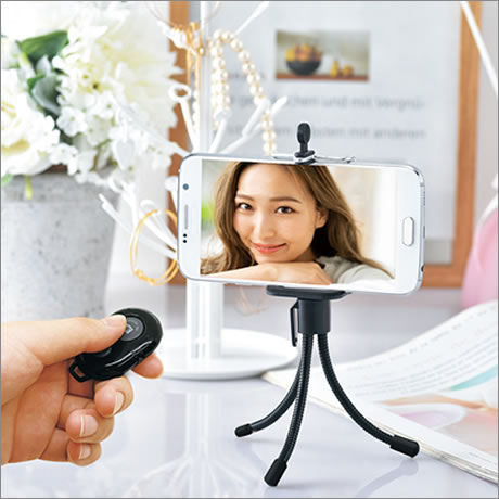 自撮りもお手軽簡単に。手元のシャッターで離れた場所からカシャっと。