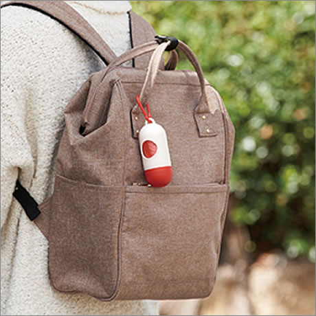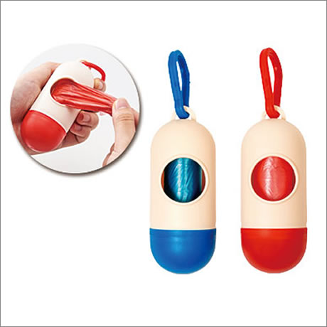フック付きケースにごみ袋をセット。カプセルの形をして見た目もかわいい上に、携帯しやすいので、ペットの散歩やアウトドアレジャーのお供におすすめです。