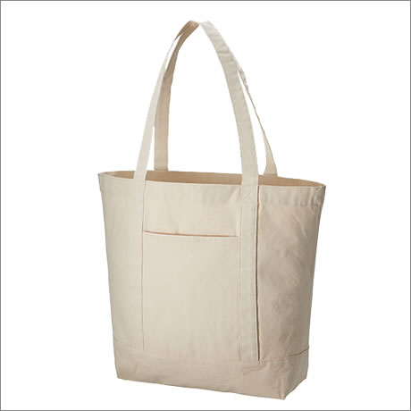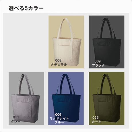 12オンスのバッグシリーズにハンドルラインが特徴のバッグが登場しました。単色の生地が大人カジュアルを演出し、幅広い世代の方にお使い頂けるバッグとなっております。表面に携帯電話や小物が入るポケットがついており、買い物や旅行などの荷物が多い時に活躍するサイズのバッグです。単色からフルカラー印刷まで対応しており、お好みのデザインでオリジナルのバッグを作成できます。ノベルティとしてはもちろん、アーティストグッズやキャラクター物販としてもおすすめです。