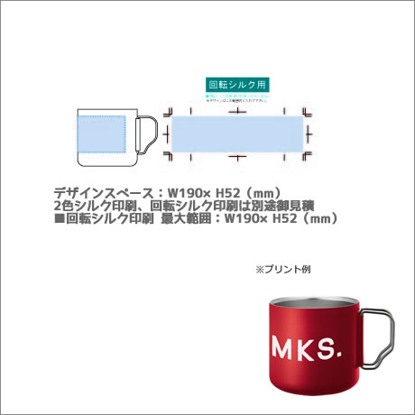 ■シルク印刷 最大範囲:W30×H30(mm) 2色シルク印刷、回転シルク印刷は別途御見積 ■回転シルク印刷 最大範囲:W190×H52(mm) |
