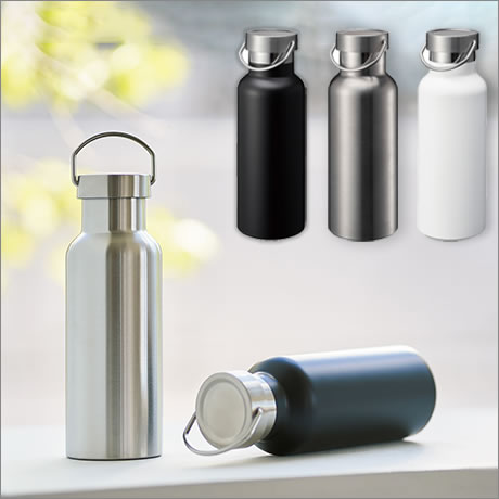 携帯しやすいハンドル付のサーモステンレスボトル。手がふさがりやすいアウトドアやスポーツ中でも利用しやすくなりました。さらに真空二重構造で保冷保温機能がついているため、スポーツ中は常温のものしか飲めない・・・といったお悩みを解決。スクリューを開けるだけの、小さなお子さんでも使いやすい分かりやすい構造です。毎年話題となる熱中症対策や、アウトドアグッズとしてもおすすめです。