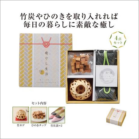 セット内容/竹炭袋×2・桧チップ・竹カゴ・敷物