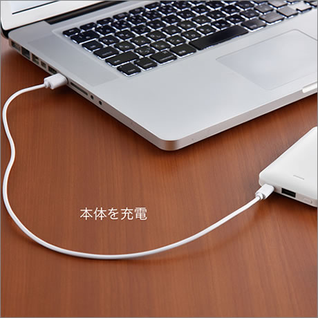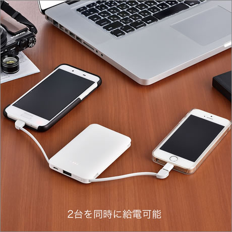 手のひらサイズながらケーブル内蔵のお役立ちバッテリー。